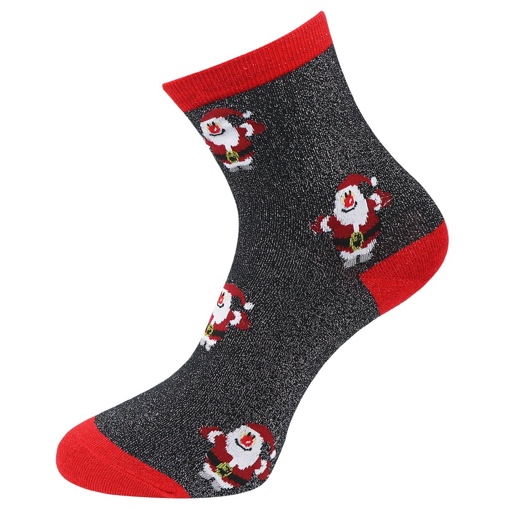 Vianočné dámske ponožky SN9385, santa s lesklou niťou - čierne farby 9001504-2