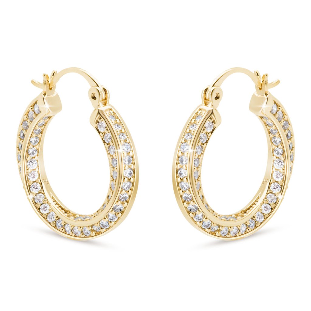 Náušnice 14k pozlátené kruhové so zatočenými zirkónmi 1003114 - Zlatá, Dámske, Rozmer 2,3 cm Ellami