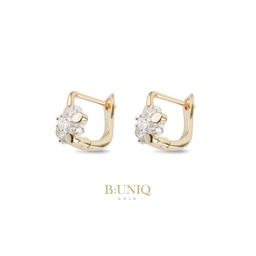 Moderné ženské náušnice pozlátili 24k zlata so zirkónmi. Veľmi jemný, elegantný vzhľad. Ruský patentový.