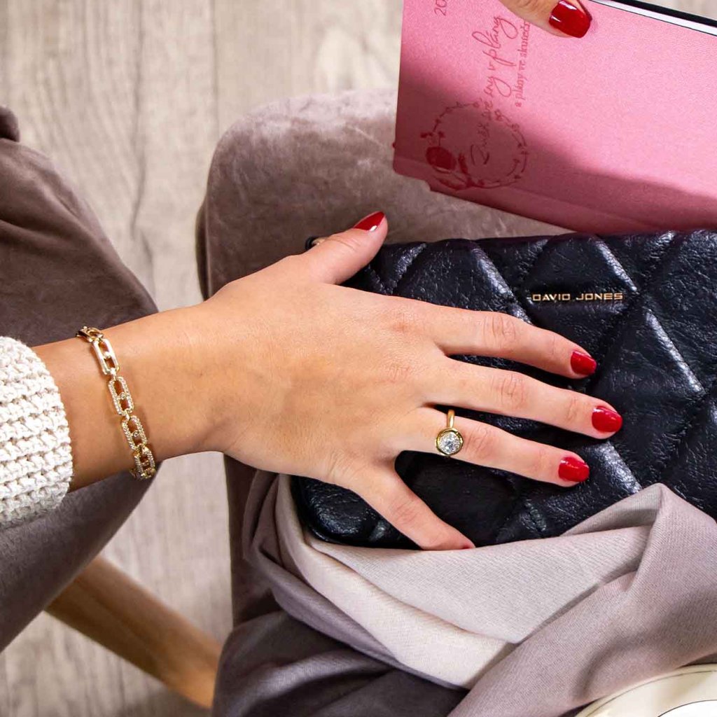 - Dodajte svojej zbierke šperkov nádych elegancie a iskry s naším úžasným zlatým prsteňom. Tento prsteň, vyrobený z vysoko kvalitných materiálov, má krásny kameň kubickej zirkónie zvýraznený radom menších kubických zirkónov. Kombinácia zlatého opasku a trblietavých kameňov vytvára skutočne pútavý šperk, ktorý pozdvihne každý outfit. Tento prsteň, ktorý je ideálny pre zvláštne príležitosti alebo ako každodenný doplnok, sa určite stane vašim obľúbeným. Nenechajte si ujsť možnosť vlastniť tento nádherný zlatý prsteň s kubickými zirkónmi a drobnými zirkónmi - objednajte si ho ešte dnes!
