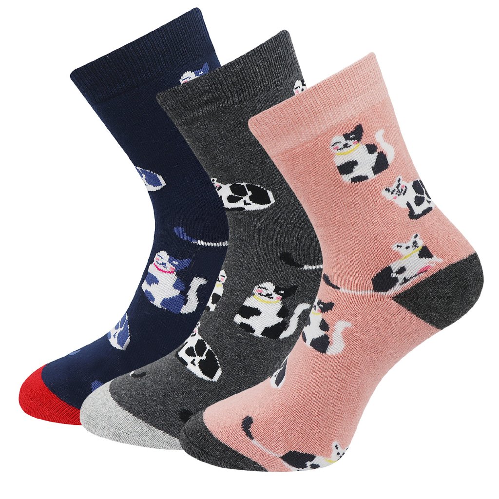 Zvýhodnený set 3 párov froté ponožiek s potlačou čiernobielej mačky A13