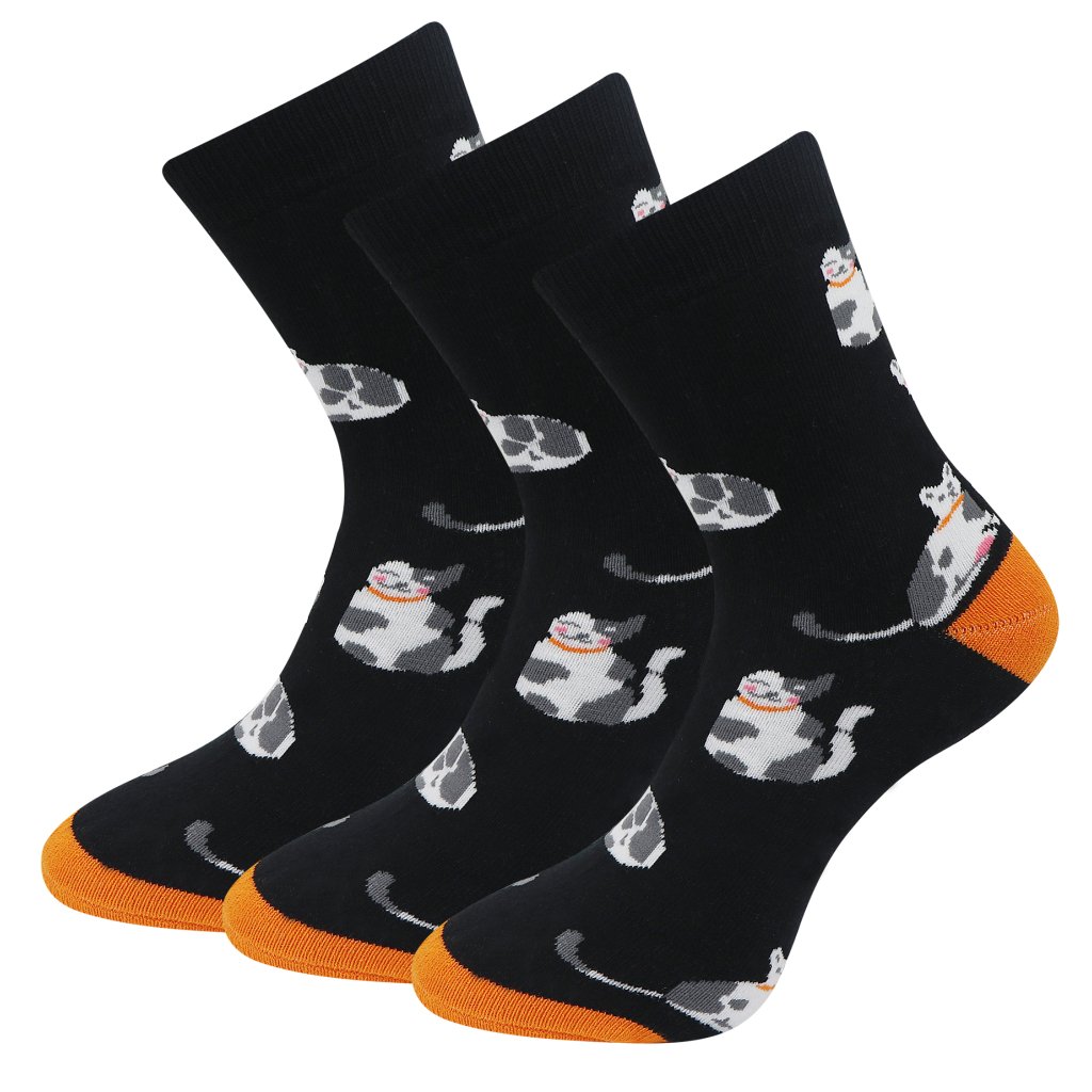 Zvýhodnený set 3 párov froté ponožiek s potlačou čiernobielej mačky - čiernej farby A12